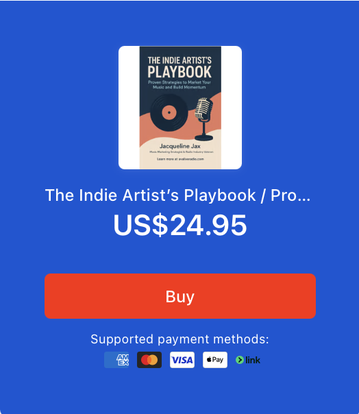 The Indie Artist’s Playbook is your all-in-one roadmap to releasing and promoting your music with confidence, strategy, and purpose. Written by industry veteran Jacqueline Jax, this guide breaks down the entire process of launching a single — from building your artist foundation to gaining playlist traction and leveraging social media — in a way that’s clear, motivating, and achievable for artists at every level.